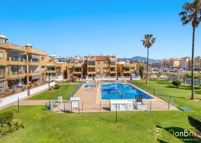 Apartamento Cerca De La Playa En Las Lagunas De Mijas Fuengirola med 2 sovrum, som vetter mot trädgården, ligger cirka 25 minuter till fots från Fuengirola äventyrsgolf i Fuengirola. Den strandnära 90 m² stora lägenheten har en terrass som vetter mot havet.